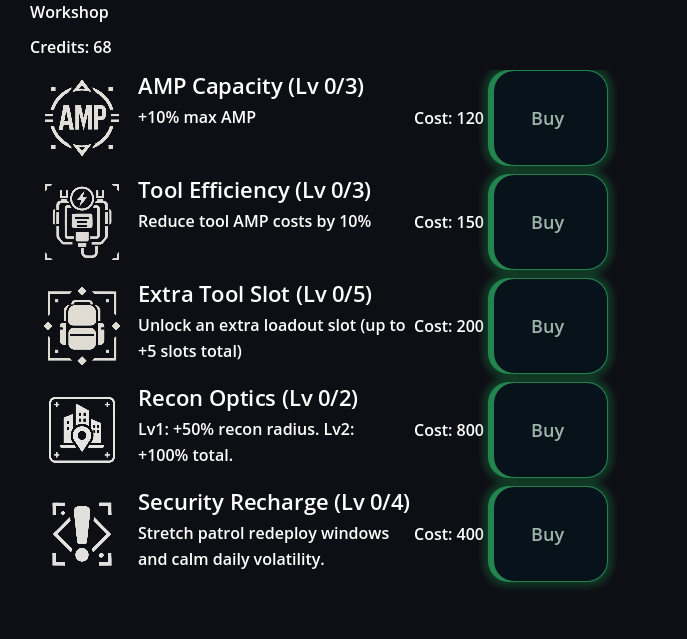 A top-down stealth extraction roguelite with an energy-based economy.